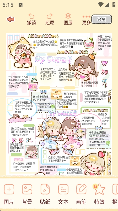 在这里能够依照自己的构思随性创作,编辑完毕后点击右上角的【完成】按钮