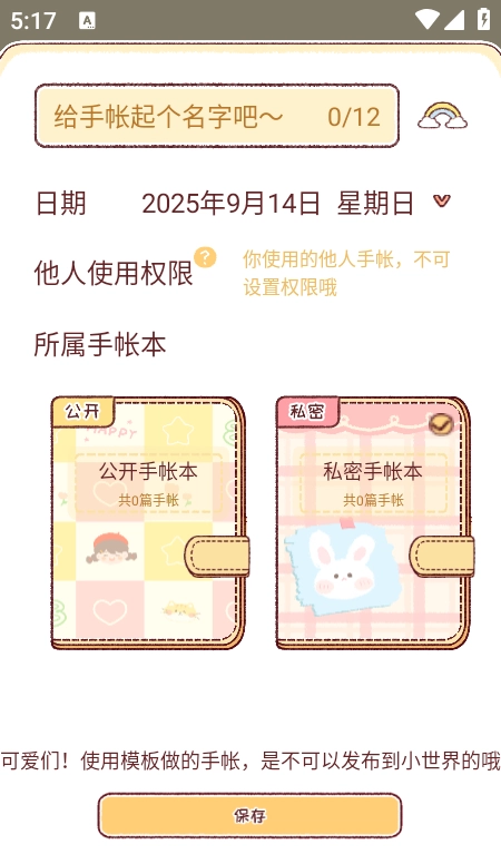 然后在上方输入手账的名字,再点击【保存】