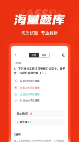 借助二级建造师题库,考生能够获取丰富的备考资料与良好的学习感受。不管是题目的丰富度,还是模拟试卷的品质,都能契合考生的备考需求。该软件还配备了专业名师对试题进行解析和讲解,助力考生更深入地理解并掌握相关知识点。通过在二级建造师题库中的学习,考生不仅能提升学习效率,还能增强备考的自信心,从而顺利通过考试。
