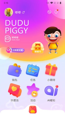 嘟嘟罐是一款专为家庭与儿童打造的财务习惯养成应用,设有家长端和儿童端两个端口,通过丰富多样的功能助力家长更有效地管理孩子的零花钱,同时助力孩子树立财务意识、养成良好的财务习惯。