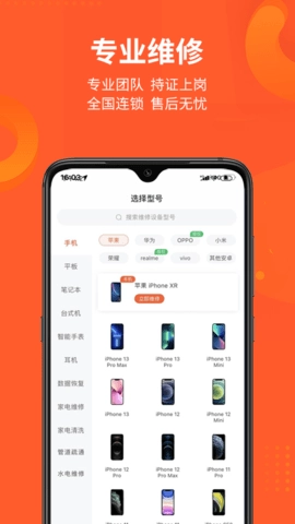 接下来便是维修环节,在此处您可以详细了解手机、平板、笔记本、台式机以及更多智能设备的具体维修型号信息。