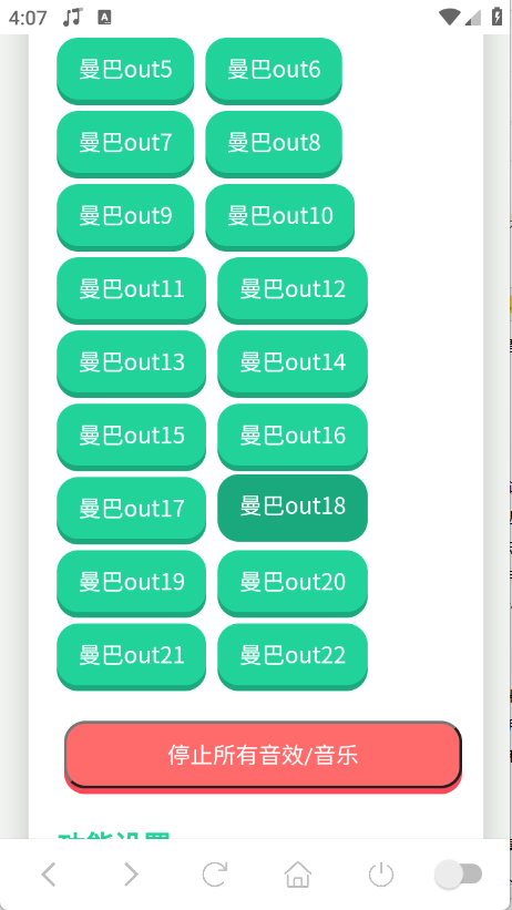点击“停止所有音效/音乐”按钮,即可暂停当前正在播放的音频。