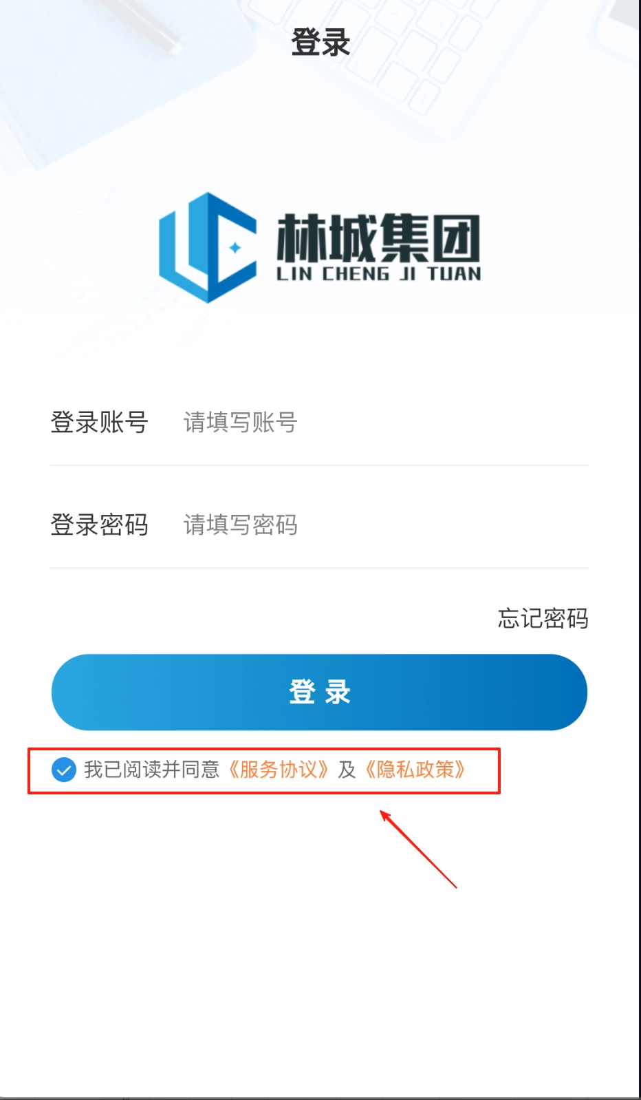 设置新密码时需重复输入两次,确保准确无误;最后要勾选同意服务协议和隐私政策的选项,该勾选框位于登录按钮的下方,务必点击,否则无法成功提交。
