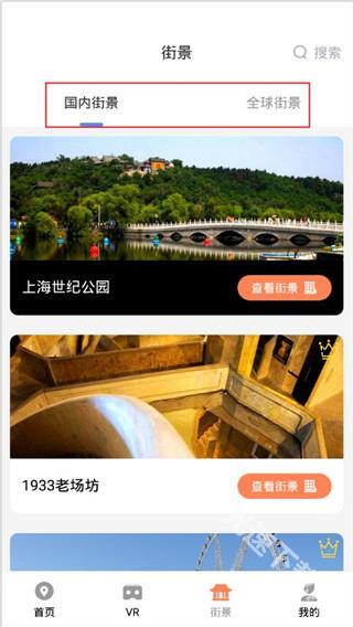 在“街景”功能里,能够分别查看“全国街景”与“全球街景”。