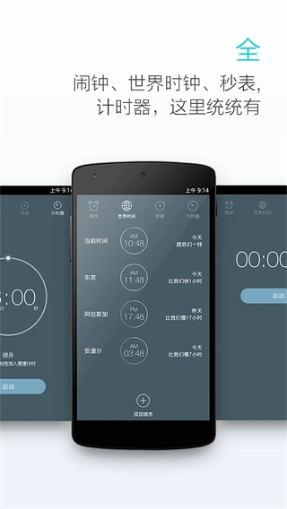 闹钟、世界时钟、秒表、计时器,常用的时间工具全都有。