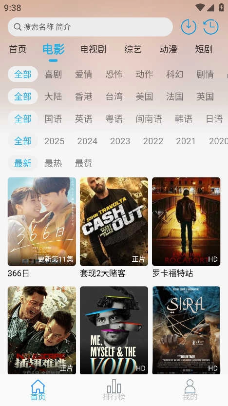 进入软件后,你可以通过顶部的搜索框直接搜索内容,也能按照分类来查找;此外,在排行榜里也能发现感兴趣的作品,找到喜欢的影视资源后点击就能进入详情页面。