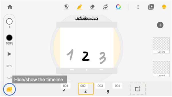 在编辑界面的右侧能看到图层的缩略图,点击上方的按钮,就能隐藏或显示图层。按钮上的数字表示当前所处的图层。