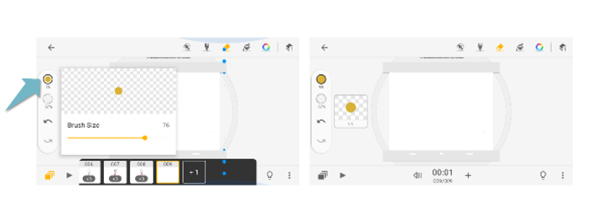 点选第一个按钮能够设置笔刷大小,点击第二个按钮可以调节笔刷的不透明度。