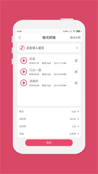 软件内支持高品质录制,同时还能选择不同的采样率与比特率。