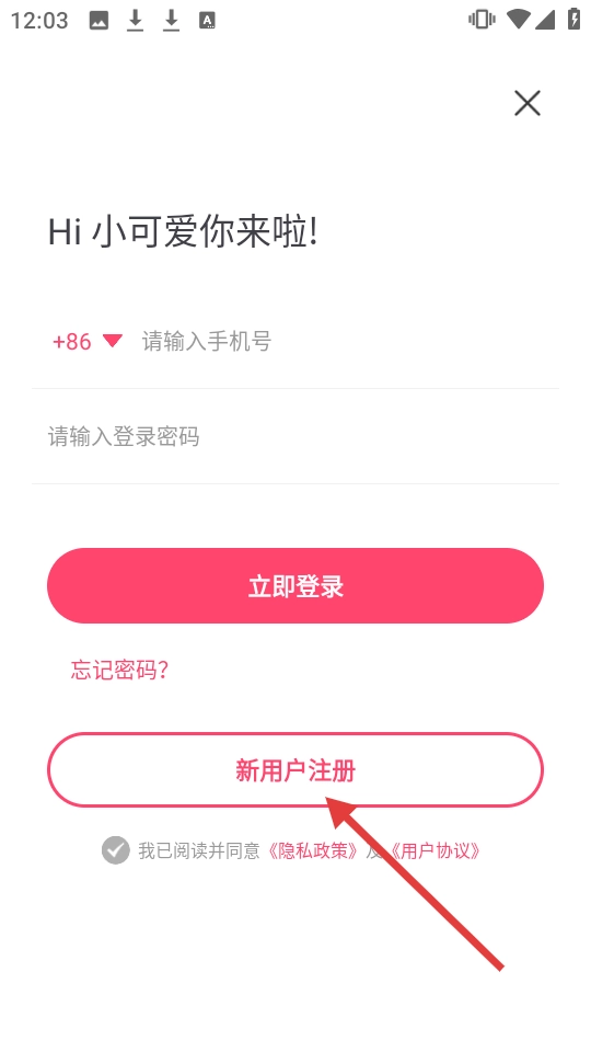 在登录界面,点击【新用户注册】进入注册页面。