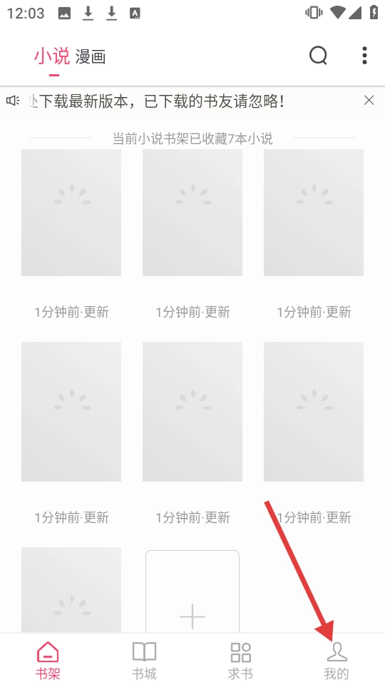 在书架页面,点击右下角【我的】进入个人页面。