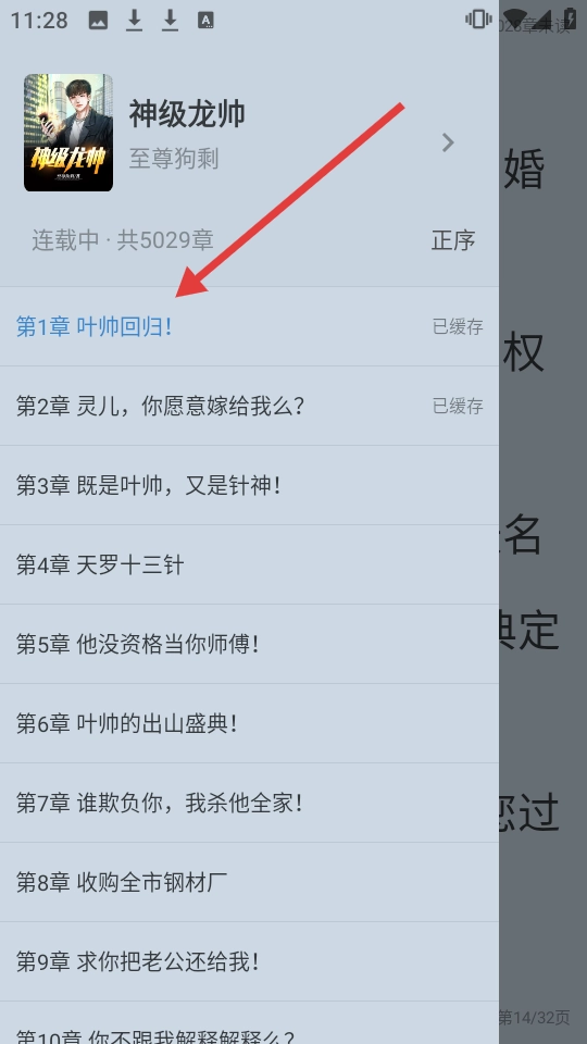 在目录列表里,就能看到像【第1章 叶帅回归!】这样的目录内容。