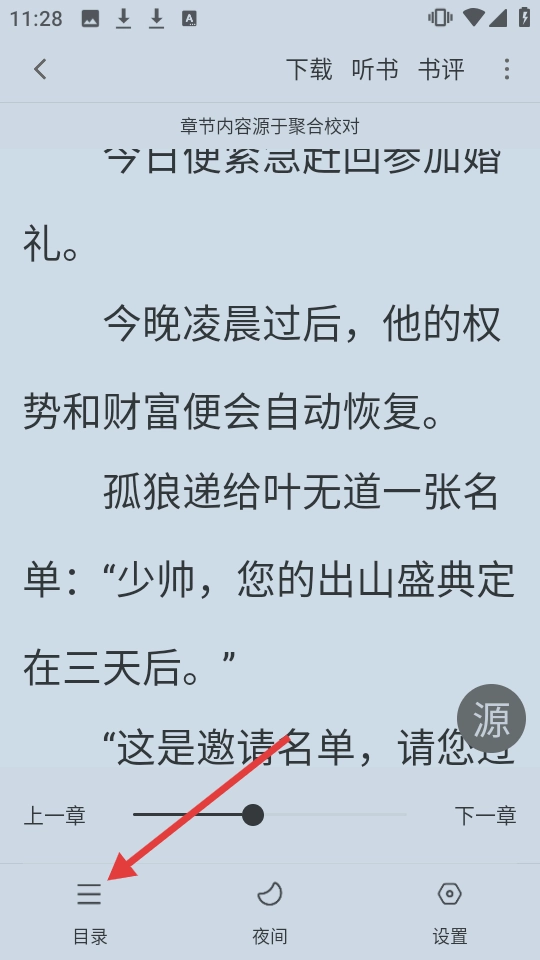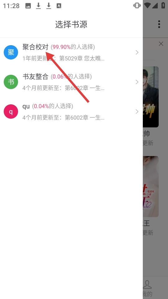 在选择书源界面,点击【聚合校对】进入阅读页面。