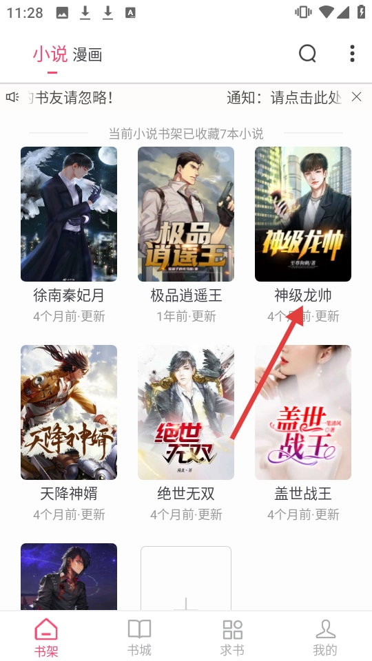 在书架页面,点击【神级龙帅】进入选择书源界面。