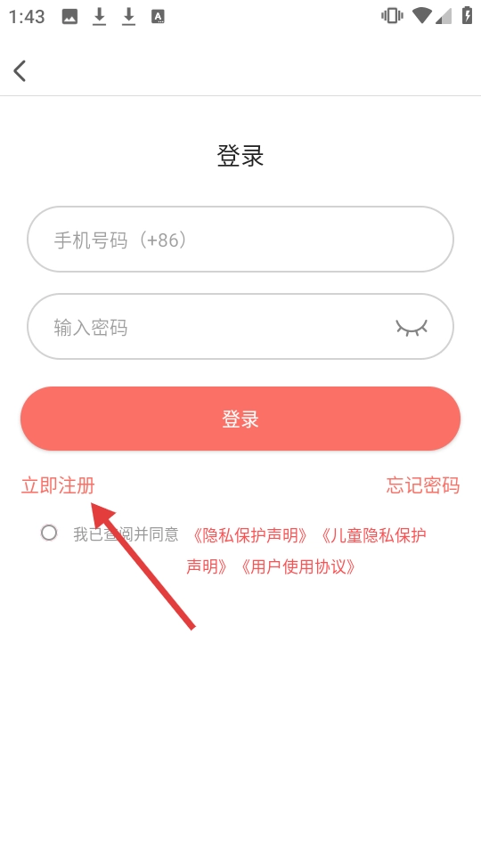 在登录界面点击【立即注册】进入注册页面。