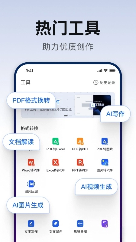 我们的设计对零基础用户十分友好:界面简洁直观,配备“一键美化”和“智能排版”功能按钮,即使新手用户不了解设计原则,也能轻松制作出专业水准的PPT。相关测试表明,65%的用户在首次使用该产品时,就能独立完成高质量的文档制作。