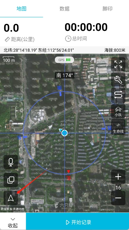 点击左下角的“圆形坐标”按钮来完成定位操作,一旦定位成功,该按钮就会切换为“三角形”样式。