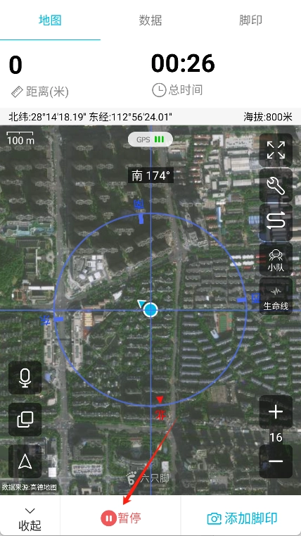 结束与保存轨迹:在结束轨迹记录时,先点击“暂停”按钮,之后再点击“结束”按钮;