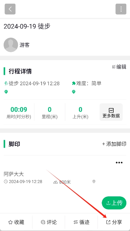 分享轨迹:在轨迹详情页面点击“分享”按钮,就能借助链接或者轨迹编号分享给其他用户。