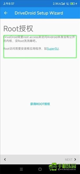 此时会进入获取root授权的页面,点击“获得root授权”按钮;由于每个人的root方式存在差异,请选择适合自己的方式来授予root权限。在成功取得root授权后,继续点击next按钮即可。
