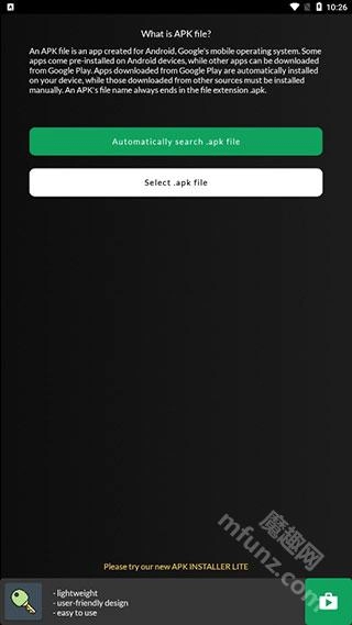 手动选择时,用户可依据文件所在位置进行挑选;而自动扫描功能则会对手机里的apk或xapk文件展开扫描。