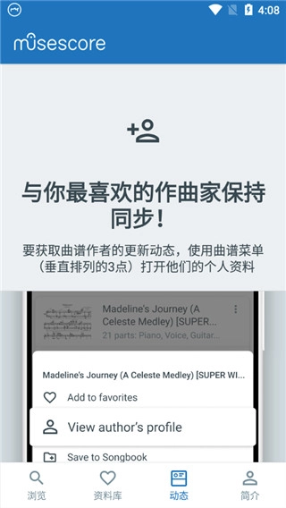 借助动态功能,我们可以添加心仪的作曲家,与他们交流互动,携手共同成长。