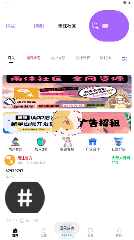 并登录雨沫社区。