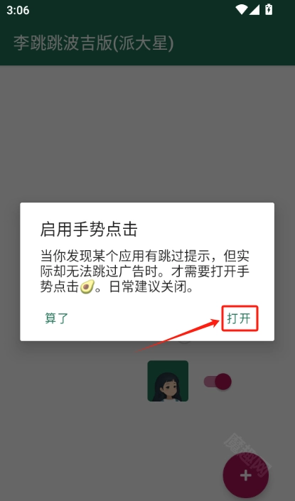 点击李跳跳的关闭按钮后,在弹出的界面里把三个功能按钮都开启就可以了。