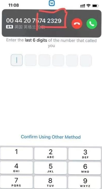 接下来会收到来自国外的电话,无需接听,直接输入来电号码的后六位即可完成验证。