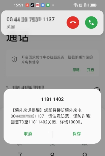 手机可能会接到境外的来电,一旦接听,对方就会以短信形式发送一条注册验证码过来。