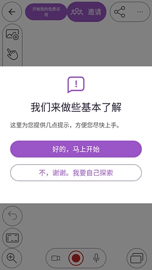 用户启动Explain Everything软件后,能清晰直观地定位到绘图、文本、形状、插入等所需功能。