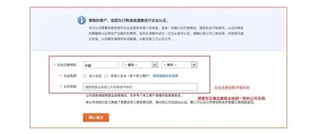 步骤一:填写企业注册地区、公司名称以及公司性质相关信息。