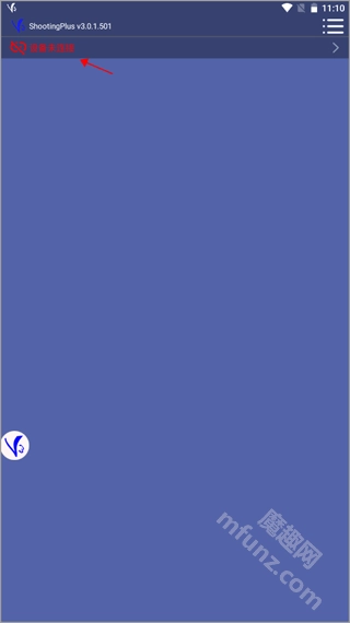安装Shootingplus V3应用程序,打开后进入主页面,找到并点击“设备未连接”选项。