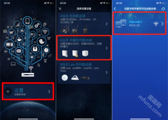 打开设备,依照提示来配置路由器。先挑选灵耀系列的路由器,接着从中选择灵耀AX魔方型号。
