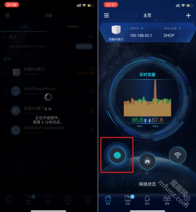 把固件更新到最新版本,查看实时的流量情况,对Mesh布局的节点进行控制。