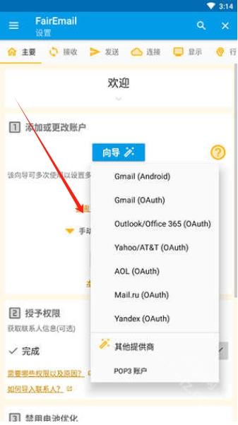 在打开的下拉菜单中选择想要添加的邮箱账号