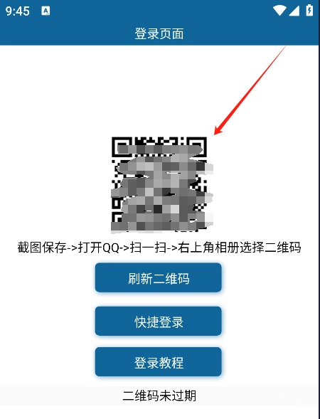 然后需要登录自己的QQ账号,你可以用另一部手机直接扫描登录,也可以将二维码截图保存,再在QQ里打开扫一扫功能,选择这张截图就能完成登录。
