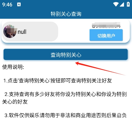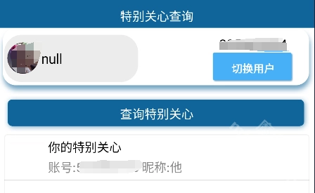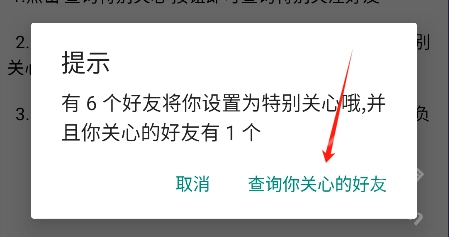 点击'查询特别关心'按钮即可查询特别关注好友