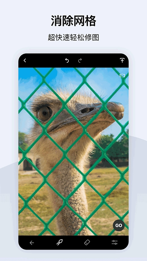 进行去除操作:修饰完成后,点击界面上的“GO”按钮,软件就会自动对您标记的区域进行处理,把水印去除掉。