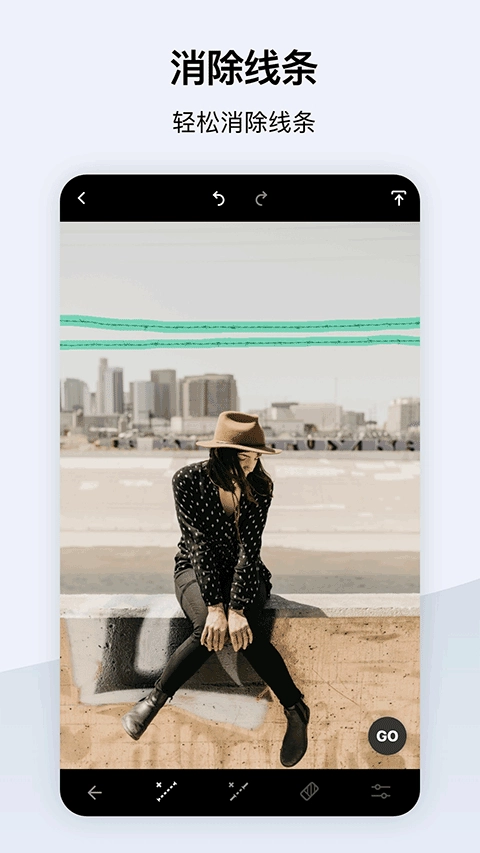 删除物体工具能帮您移除照片里的干扰元素,您可以选用刷子或套索工具,把要删除的部分标记出来,再点击Go按钮就完成了。要是想去除瑕疵,或者用复制图章工具来复制物体也可以。您还能自由调节图章的半径、羽化程度以及不透明度。橡皮擦工具可以擦除复制的内容,它的半径、羽化和不透明度同样能自定义调整。