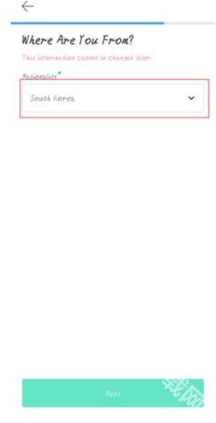 选择国家时请注意,该信息一旦选定将无法修改。可供选择的选项为:韩国、韩国以外的国家。
