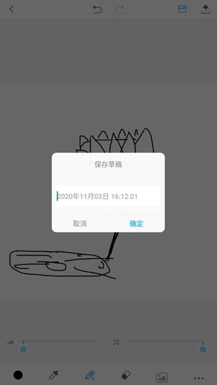 在空白画布上开展绘画创作,完成后点击“保存”按钮。