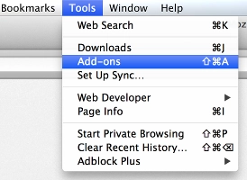 点击 Firefox >> 附加组件(若使用 Mac OS X 或 Linux 系统,则点击菜单栏中的“工具”>>“附加组件”),即可打开 Firefox 附加组件管理器。