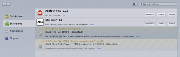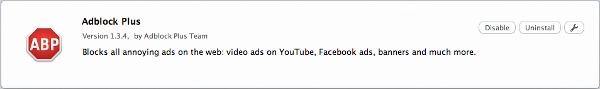 在附加组件管理器的“扩展”标签页中找到 Adblock Plus: