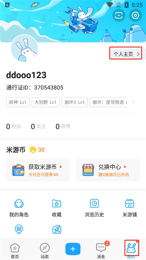 打开米游社应用,进入个人中心页面,接着点击【我的角色】这一选项。
