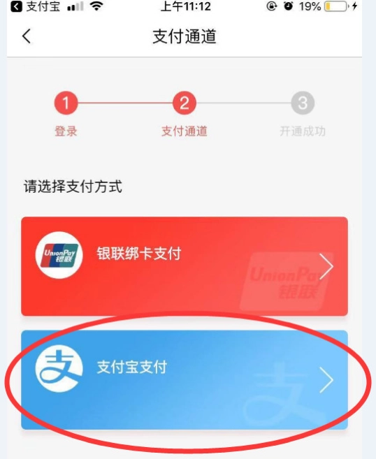 在支付方式中选择支付宝支付,确认授权