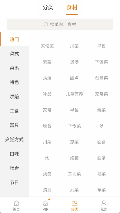 详细的菜谱分类涵盖食材、菜式、菜系、特色、口味、烹饪方式、场景、节日等多个方面。