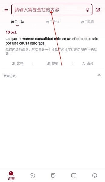 在打开的西语助手中,大家可以在【词典】页面上方的搜索框里输入要查询的西语词句,这样就能更清晰地了解它的用法和对应的中文意思。