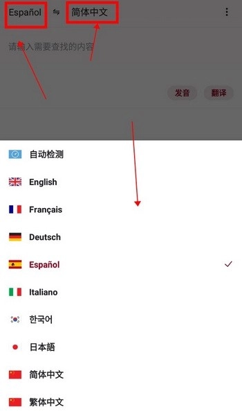 另外,【翻译】页面还提供了更直接的翻译功能,除西班牙语外,还支持英法德意等多国语言的互译,点击即可快速切换语言。