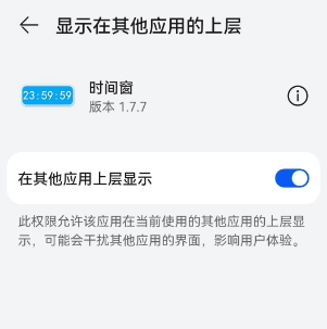 你也可以通过“设置”进入“权限管理”页面,找到时间窗应用后,开启它的“显示悬浮窗”权限。